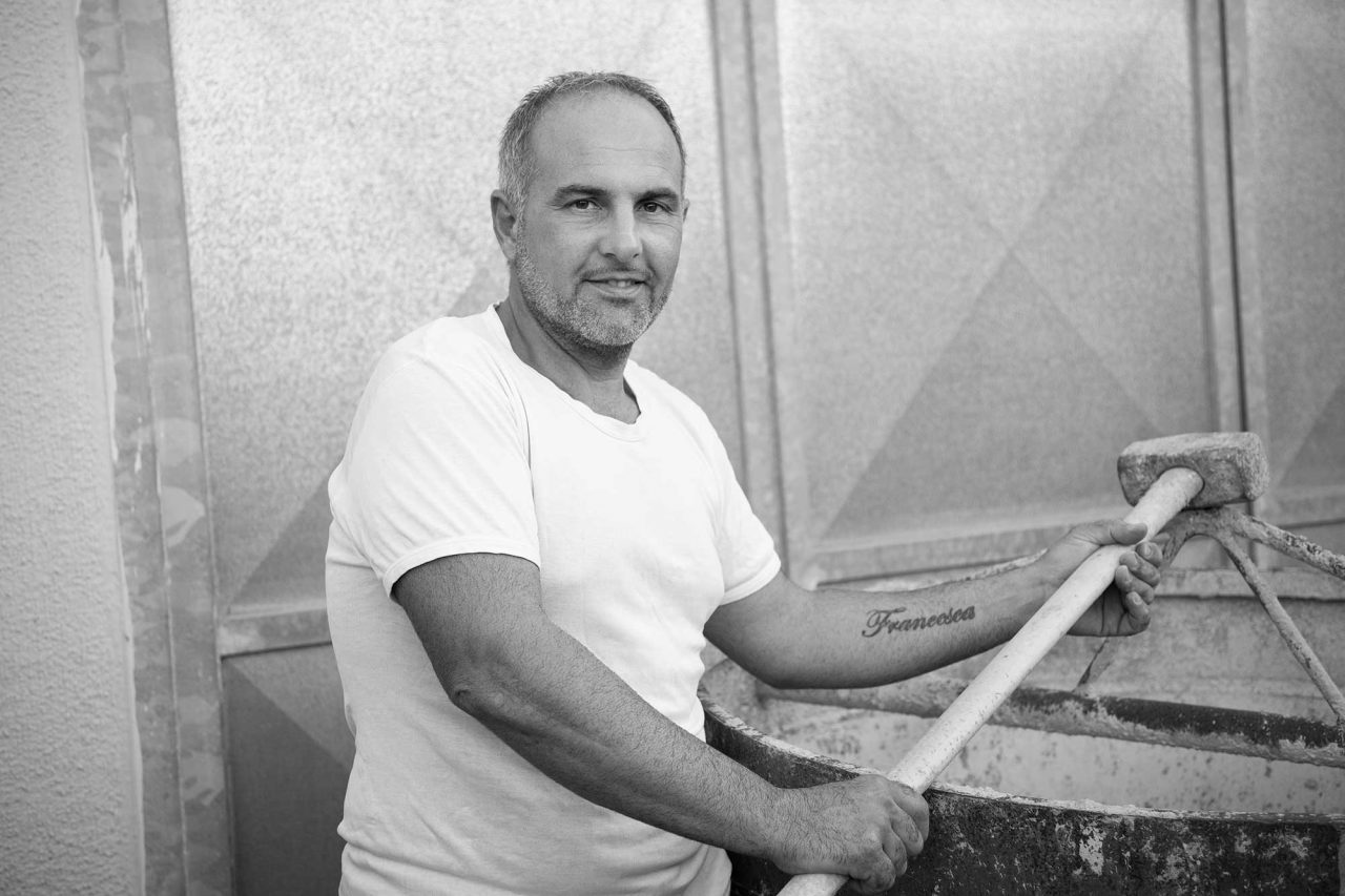 Muratore esperto di professione, Giuliano lavora al fianco di Ado e Francesco dal 1990. In trent’anni di lavoro hanno eretto i muri di una Maremma in costante mutamento.